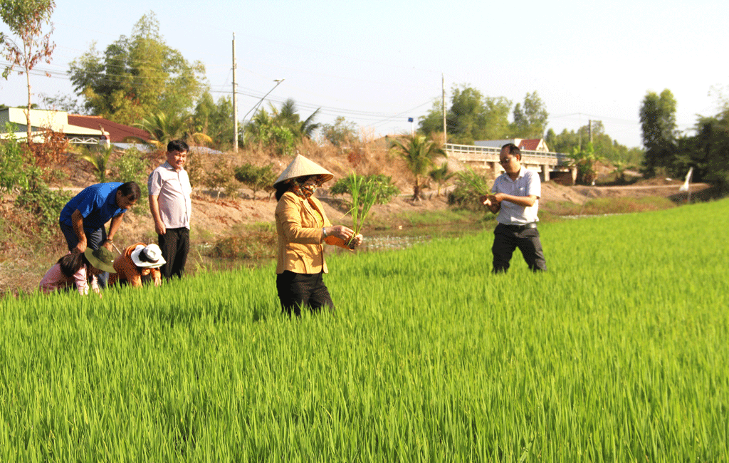 Thăm đồng, kiểm tra sâu bệnh trên các trà lúa giai đoạn đòng trổ tại huyện Mộc Hóa