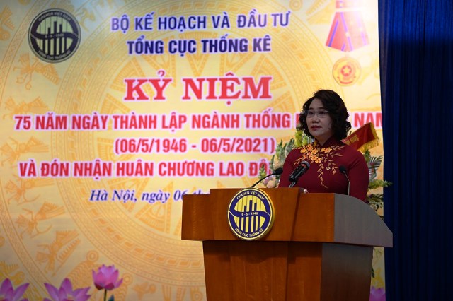 Phát biểu tại buổi lễ, Tổng cục trưởng Nguyễn Thị Hương nêu bật truyền thống vẻ vang 75 năm phát triển của ngành, đồng thời khẳng định: Kế thừa và phát huy những thành tựu và kết quả đạt được của 75 năm qua, trong thời gian tới, ngành Thống kê sẽ tiếp tục đổi mới sáng tạo, tạo sự chuyển biến mạnh mẽ để phát triển nhanh và vững chắc.