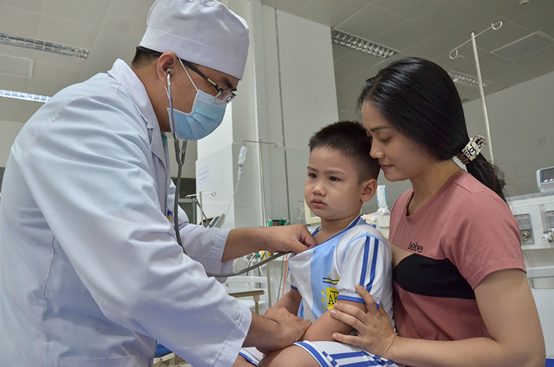 Bệnh nhi được điều trị bệnh tay chân miệng tại Khoa cấp cứu, Bệnh viện Sản - Nhi tỉnh.