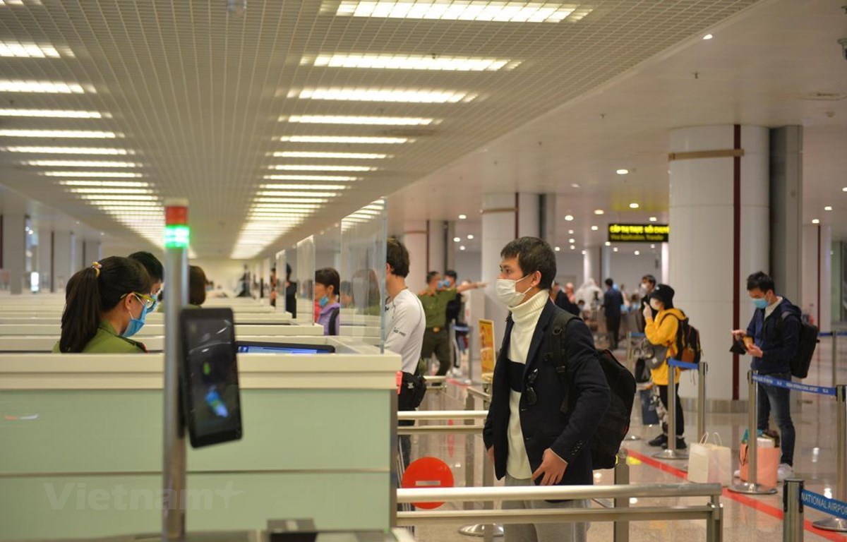 Hành khách làm thủ tục nhập cảnh tại sân bay Nội Bài. (Ảnh: Hoàng Anh/Vietnam+)
