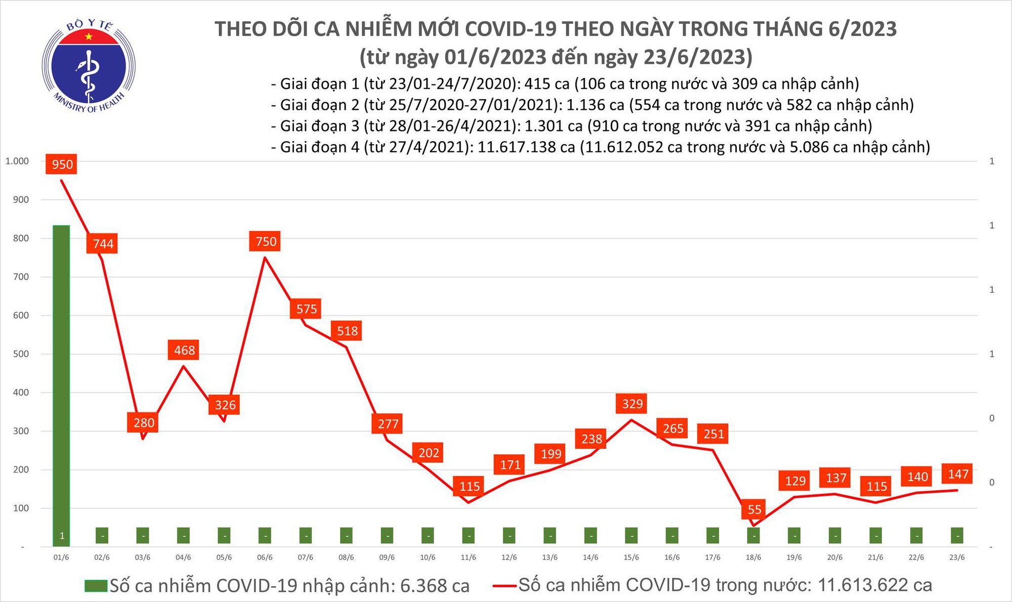 Ngày 23/6: Có 147 ca COVID-19 mới, bệnh nhân thở oxy tăng lên