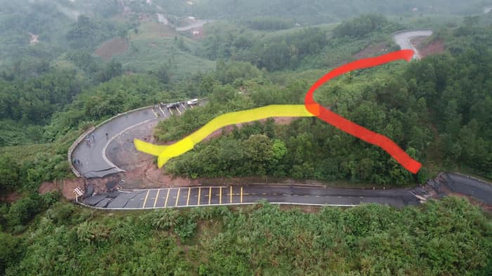 Bộ GVT nhận định, đoạn đường bị sự cố nghiêm trọng tại QL.15D nằm trên khu vực có địa hình phức tạp, đèo cao vực sâu, khúc cua tay áo, không thể sửa chữa ngay. Phương án đưa ra, thi công 1 tuyến đường công vụ để đảm bảo giao thông cho các xe ô tô con, xe khách, xe tải trọng lượng nhỏ; đồng thời thi công mới một tuyến chính để thông xe toàn bộ, tuyến này cắt ngang trên đỉnh đồi có độ dốc lớn và địa chất phức tạp, đá cứng. Tuy nhiên, đây là phương án duy nhất.