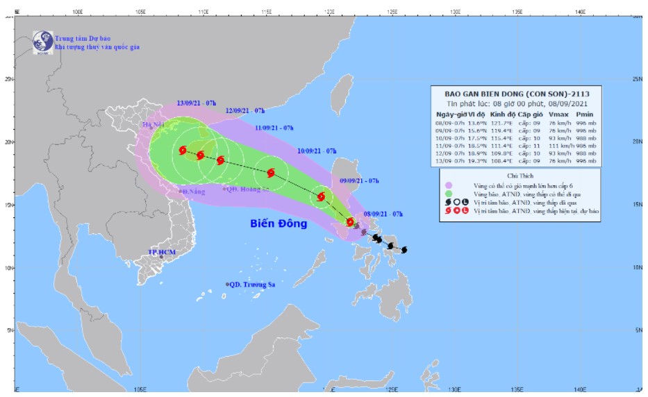 | Dự báo đường đi của cơn bão Conson (nguồn: nchmf.gov.vn) |