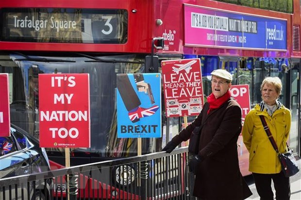 Người dân tuần hành phản đối Brexit bên ngoài tòa nhà Quốc hội ở London, Anh, ngày 19/3/2019. (Nguồn: THX/TTXVN)