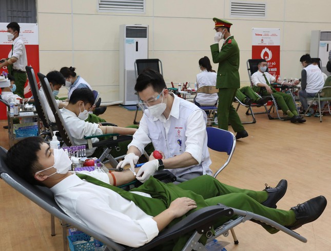| Học viên của Học viện Cảnh sát Nhân dân tham gia hiến máu tại ngày hội chính của Chủ nhật Đỏ. (Ảnh: ĐT) |