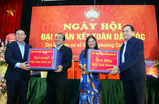 Tại Ngày hội, Phó Thủ tướng Chính phủ Vương Đình Huệ và Chủ tịch Ủy ban Trung ương MTTQ Việt Nam Trần Thanh Mẫn đã tặng quà cho đại diện Ban Công tác mặt trận 2 địa bàn dân cư. Ủy ban Trung ương MTTQ Việt Nam cũng tặng quà 10 hộ gia đình tiêu biểu, có thành tích trong thực hiện các phong trào thi đua tại địa phương. UBND thành phố Hà Nội, Ủy ban MTTQ Việt Nam phường Quán Thánh đã tặng quà cho các hộ gia đình có hoàn cảnh khó khăn, hộ gia đình có thành tích trong thực hiện phong trào “Toàn dân đoàn kết xây dựng nông thôn mới, đô thị văn minh” năm 2019./.