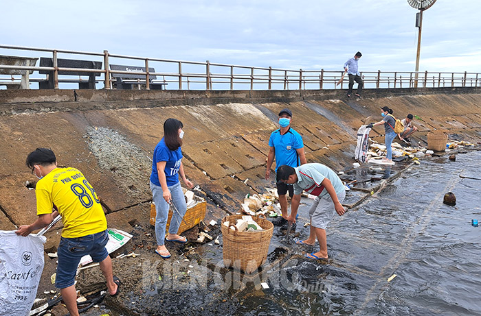 Người dân TP. Phú Quốc (Kiên Giang) tham gia thu gom rác.