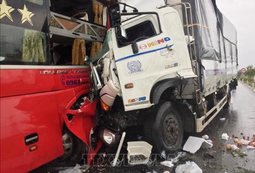 Theo nhiều nhân chứng tại hiện trường, vụ va chạm xảy ra lúc trời mưa to, xe tải vượt xe khác để đi lên phía trước thì đấu đầu với xe khách.