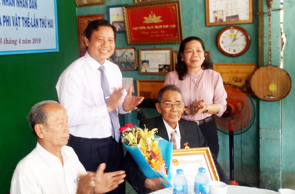 Phó Chủ tịch UBND tỉnh - Phạm Tấn Hòa trao huy hiệu và bằng chứng nhận danh hiệu vinh dự Nhà nước “Nghệ nhân nhân dân” cho nghệ nhân Đặng Quất Vân