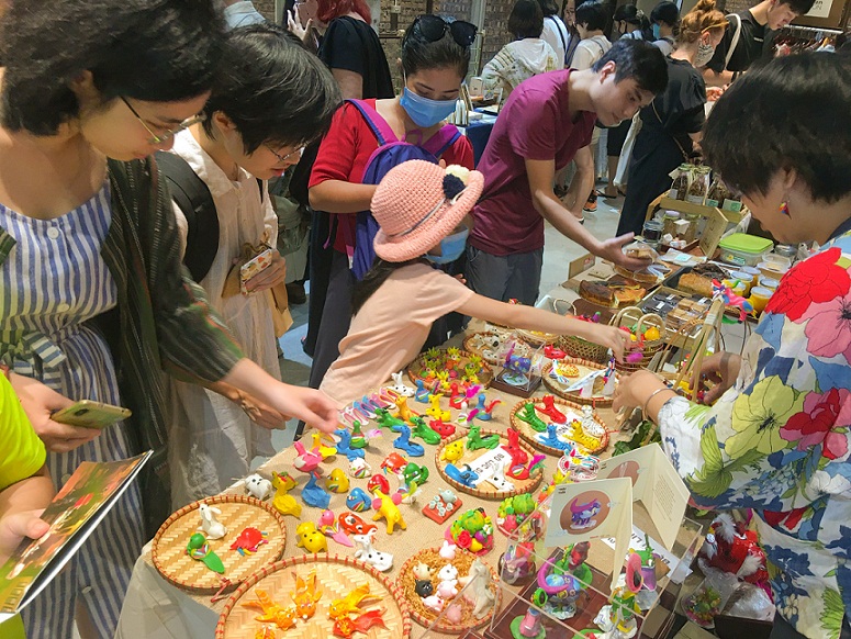 Anh Hậu chia sẻ: “Điểm khác biệt lớn nhất mà sản phẩm đồ chơi công nghệ không thay thế được đó là sự thoải mái, ngô nghê, hài hước và thân thuộc của tò he. Khi đưa con giống bột ra phố Hàng Mã, tôi cảm thấy rất bất ngờ khi sản phẩm được mọi người đón nhận nhiệt tình. Nhiều người lớn tuổi xúc động, du khách nước ngoài trầm trồ khi nhìn thấy hình ảnh con giống bột hiện hữu trên sạp hàng. Vì thế, năm nay tôi quyết định làm nhiều mẫu hơn để phục vụ người chơi”.