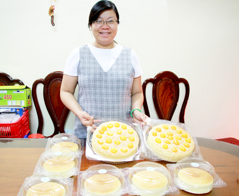 Chị Hương Bình với các loại bánh bông lan nhà làm.