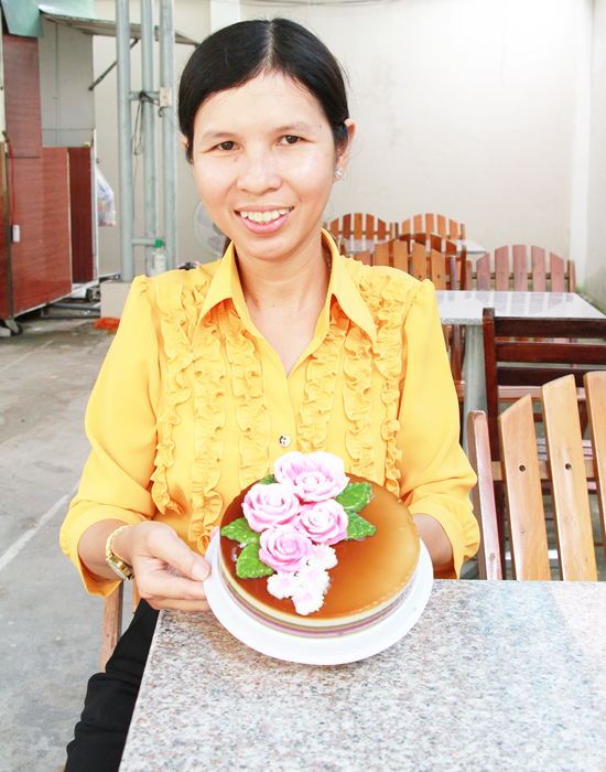 Đổ rau câu rất cần chịu khó, tỉ mỉ, đôi khi để có ổ rau câu hoàn chỉnh, tôi mất khoảng 4 giờ”. Theo chị Tú, để hài hòa việc cơ quan và sở thích bánh trái, chị Tú dành thời gian buổi trưa và buổi tối làm thêm tại nhà. Tuy bận rộn, nhưng mỗi khi khách hàng bày tỏ sự hài lòng, yêu thich sản phẩm đẹp mắt, chị Tú thêm động lực cố gắng. Mới đây, chị Tú thành công với các loại bánh bông lan trứng muối, bánh bông lan hạnh nhân, cup cake… được nhiều khách hàng yêu thích. Nhờ vậy, mỗi tháng, chị Tú thêm thu nhập từ 2 – 3 triệu đồng.