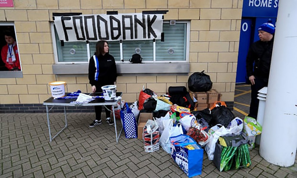 Một ngân hàng thực phẩm đặt bên ngoài sân King Power của Leicester City hồi đầu năm nay. Ảnh: Guardian