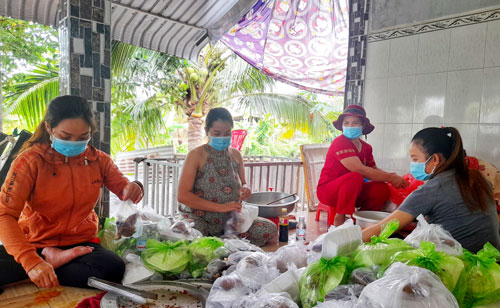 3 ngày qua, mỗi ngày, gia đình ông Tài đều tặng hàng trăm suất cơm, nước uống miễn phí cho người dân về miền Tây tại khu vực Quốc lộ 1, đoạn qua địa bàn phường Khánh Hậu, TP.Tân An, tỉnh Long An. Hơn 10 giờ, công đoạn cuối cùng cho 300 suất ăn ngày 06-10-2021 đã hoàn tất. Các thành viên trong gia đình ông Tài vận chuyển những suất ăn và chiếc bàn tròn lên xe ba gác chở đến điểm tập kết. Phương tiện chở cá mưu sinh hàng ngày của gia đình ông được tận dụng hết công suất trong ngày dịch. Bà Ngô Thị Tuyết Mai chia sẻ: “Mỗi ngày, chúng tôi đều đổi món, có bữa thịt, bữa cá. Để hoàn thành 300 suất ăn, từ 13 giờ ngày hôm trước, mọi người bắt đầu chuẩn bị nguyên liệu. 5 giờ sáng hôm sau, bắt đầu chiên cá, nấu cơm và đóng hộp. Mệt thì có mệt nhưng vui lắm! “Một miếng khi đói bằng một gói khi no”, hy vọng những suất ăn này sẽ phần nào làm ấm lòng người dân xa quê”.