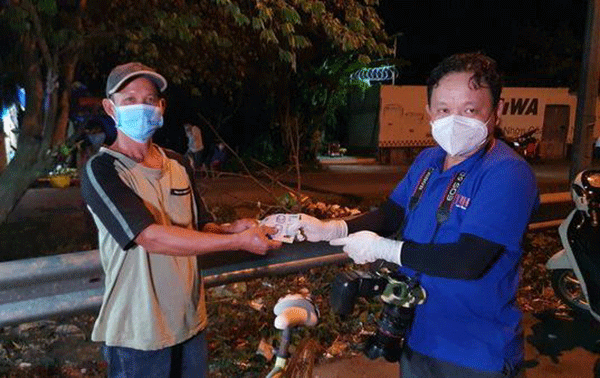 “Bữa đầu tháng, tôi đi chợ chiều, ngang qua đường dẫn cầu Cần Thơ thấy rất nhiều người ngồi nghỉ ngơi, hỏi ra mới biết họ từ TP Hồ Chí Minh, Bình Dương về quê. Ai cũng mệt mỏi mà chỉ ăn tạm bánh mì và một số đồ ăn khô, thấy tội quá, tôi về nhà nấu một nồi cháo, cho vô ly nhựa rồi biểu các con chở ra mời họ ăn. Mà dòng người về quê liên tiếp không ngừng nên tôi quyết định nấu cháo mỗi ngày tiếp tế cho bà co có sức đi đường. Rồi hàng xóm, bạn bè người góp gạo, góp rau, góp thịt, gia vị… nấu tới giờ luôn” - đó là lời kể mộc mạc của bà Lê Thị Cẩm Lệ, người dân khu vực Xóm Chài, phường Hưng Phú, quận Cái Răng. Từ việc làm của bà, nhóm thiện nguyện của người dân ở Xóm Chài ra đời. Nhóm chia làm 2 tốp: tốp hậu cần do bà Lệ và các chị em trong xóm ở nhà nấu cơm, cháo, nui, bánh lọt; mỗi ngày cung cấp khoảng 250 suất ăn ấm nóng. Tốp còn lại do chị Nguyễn Thanh Trân, con dâu bà Lệ và các bạn trẻ trong xóm túc trực mỗi ngày ở chân cầu Cần Thơ để phát cơm cháo, nước uống cho người về quê. Nhóm còn vận động được sữa tươi, bánh ngọt, khẩu trang, áo mưa… để tặng kèm với những phần ăn. Chị Nguyễn Thanh Trân cho biết: “Chúng tôi có mặt từ 16 giờ và phát đến khi hết quà. Những ngày đầu, lượng người về đông lắm nên chúng tôi làm tới 1-2 giờ sáng, mấy ngày gần đây ít người hơn nên chúng tôi nghỉ lúc 21 giờ hay 23 giờ, tùy bữa!”.