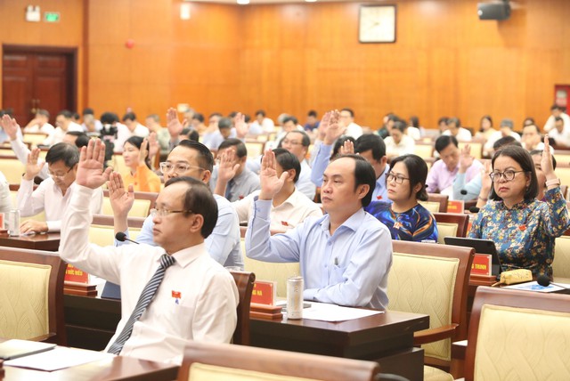 | Các đại biểu thống nhất thông qua các tờ trình của UBND TPHCM trong kỳ họp thứ 10, khóa X (Ảnh: VGP/Vũ Phong) |