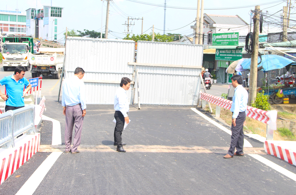 Đoàn công tác nghiệm thu cầu trên cống Rạch Chanh (TP.Tân An)