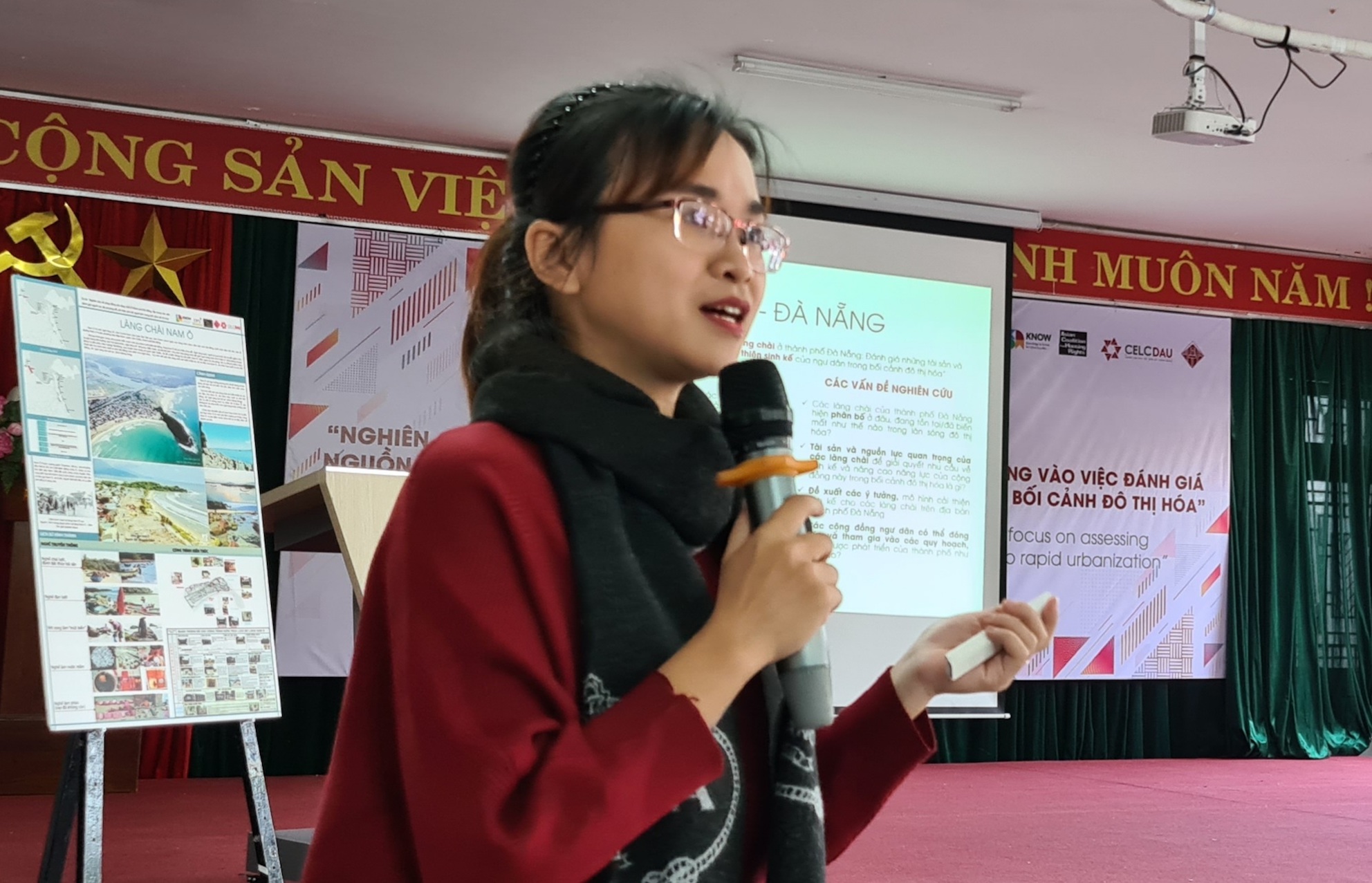 Phát biểu tại Hội thảo, TS Lê Công Toàn- Phó Hiệu trưởng trường Đại học Kiến trúc Đà Nẵng cho biết, mục đích của Hội thảo nhằm thông tin đến các cấp chính quyền và ngành chức năng TP Đà Nẵng cũng như các các cơ quan, tổ chức, các Hiệp hội cùng đại diện cộng đồng ngư dân Đà Nẵng và các tỉnh Quảng Nam, Quảng Ngãi, đến đội ngũ giảng viên, sinh viên các trường đại học trên địa bàn TP Đà Nẵng dự án KNOW và kết quả nghiên cứu về cộng đồng làng chài Đà Nẵng đến thời điểm hiện tại. Đồng thời, thông qua đó sẽ tiếp nhận sự phản hồi của các bên có liên quan; thảo luận về khả năng lồng ghép và điều phối nghiên cứu này vào định hướng phát triển của TP Đà Nẵng.