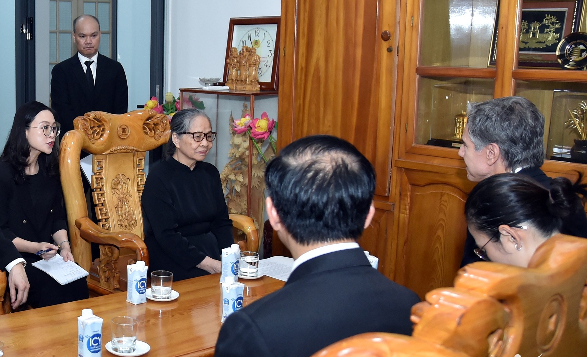 | Thay mặt gia quyến, Phu nhân Ngô Thị Mận bày tỏ xúc động trước những tình cảm tốt đẹp của phía Hoa Kỳ, cá nhân Tổng thống Biden và Ngoại trưởng Blinken đã dành cho Tổng Bí thư |