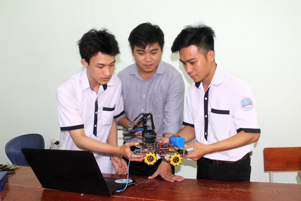 Thầy Mai Thanh Hải - giảng viên Trường Cao đẳng Long An, tạo điều kiện cho các sinh viên cùng nghiên cứu khoa học để các em nâng cao kiến thức