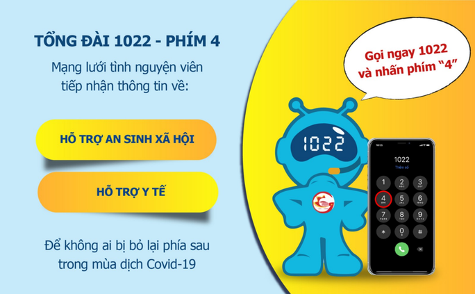 Với mục tiêu “không một người dân nào bị bỏ lại phía sau” trong “cuộc chiến” chống đại dịch COVID-19 trên địa bàn TP Hồ Chí Minh, từ ngày 06/8/2021, Sở Thông tin và Truyền thông TP Hồ Chí Minh, Tổ Thông tin Đáp ứng nhanh của Ban Chỉ đạo Quốc gia phòng, chống dịch COVID-19 và Đại học Quốc gia TP Hồ Chí Minh đã phối hợp triển khai Mạng lưới tình nguyện viên tiếp nhận thông tin hỗ trợ về chăm sóc sức khỏe và an sinh xã hội cho người dân trên địa bàn Thành phố thông qua Tổng đài 1022 – nhấn phím 4.