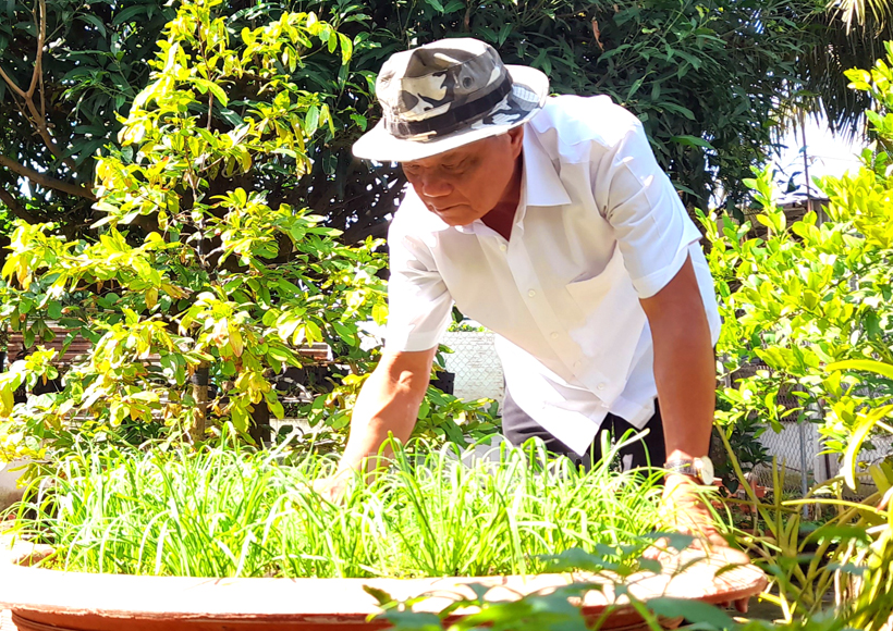 Gặp chú Tư Long tại ấp Phú Thọ 1, xã Hiếu Trung, huyện Tiểu Cần, chúng tôi cảm nhận được sự bình dị qua cách trò chuyện của chú và cả việc bố trí các vật dụng trong căn nhà tình nghĩa được xây dựng vào năm 2013. Một chiếc giường sắt vừa đủ cho một người nằm, một chiếc võng được đặt gần kệ ti-vi là nơi chú nghỉ ngơi và theo dõi tin tức hàng ngày. Chân dung Bác Hồ, chân dung các vị Tổng Bí thư qua các thời kỳ được treo trang trọng phía trên một chiếc bàn dài để uống trà; chung quanh nhà là các loại cây ăn trái và rau, củ ngắn ngày do chính tay chú trồng và chăm sóc.