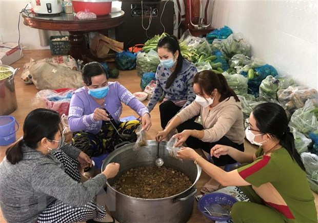 Người dân Bạc Liêu nấu ăn hỗ trợ bà con trong các khu cách ly. (Ảnh: Tuấn Kiệt/TTXVN)