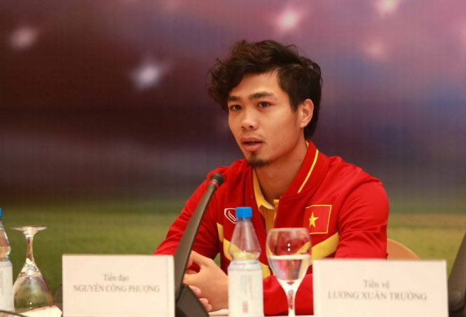 Tiền đạo đội tuyển VN Công Phượng tại cuộc họp báo của VTV. Ảnh: Nam Khánh