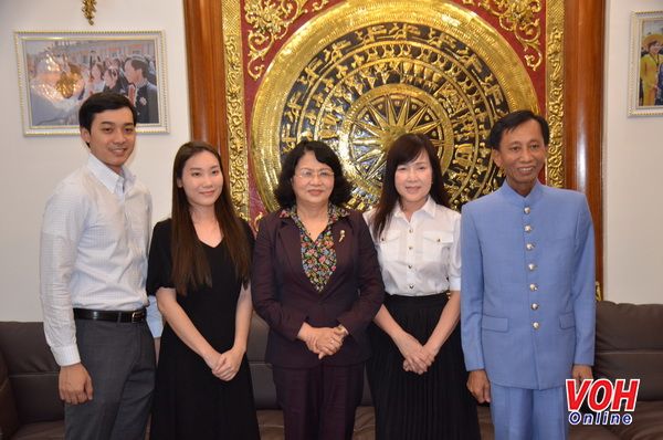 | Phó Chủ tịch nước Đặng Thị Ngọc Thịnh (đứng giữa) thăm Hiệp sĩ Đại Thánh giá Lê Đức Thịnh (ngoài cùng bên phải) năm 2019. (Nguồn ảnh: Đài Tiếng nói Nhân dân TP. Hồ Chí Minh) |