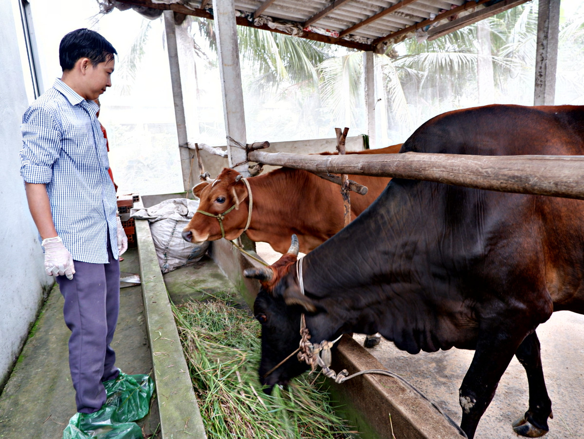 Ông Lộc bộc bạch: “Giống bò này, tôi nuôi gần 2 năm mới xuất bán. Nhẩm tính đàn bò bán ra chỉ huề vốn, không có lợi nhuận nhiều. Hiện gia đình chừa lại 2 con bò sinh sản để nuôi cầm chừng, tận dụng cỏ xung quanh nhà làm thức ăn cho bò”.