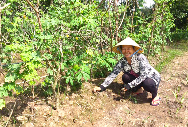 Cần cù, chịu khó, ngoài canh tác lúa, bà còn trồng thêm rau màu, bỏ mối cho các tiểu thương ở chợ Gò Đen và một vài hàng quán ở địa phương. Mỗi năm, bà trồng 2-3 vụ rau màu. Dịp tết, bà lại trồng thêm các loại hoa tết, cây kiểng để bán,...