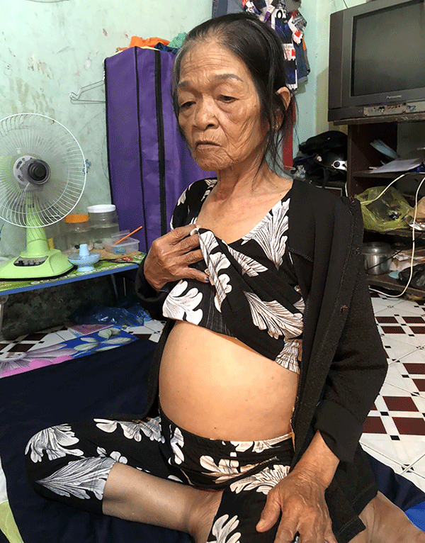 Bụng của bà Trần Thị Cúc ngày càng to.