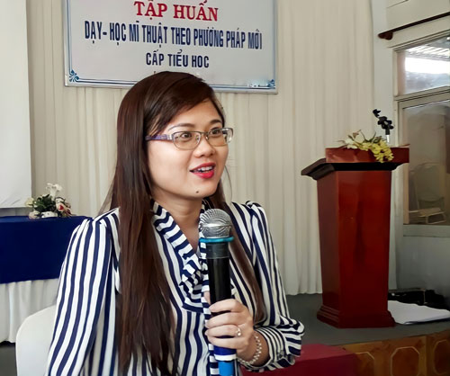 Để gắn bó với công việc dạy trẻ khuyết tật đòi hỏi GV phải dành thật nhiều tình thương cho trẻ. Đặc biệt, phải kiên nhẫn và chu đáo bởi các em thường rất nhạy cảm, không kiểm soát được cảm xúc của bản thân. Mỗi giờ lên lớp, GV phải tạo cho HS tâm lý thoải mái, khi các bé làm chưa đúng thì nhẹ nhàng nhắc nhở, tránh gây áp lực. Theo cô Âu, đối với bộ môn Mỹ thuật, GV cũng cần dạy thật chậm, sử dụng phương pháp dạy học trực quan, dùng nhiều hình ảnh minh họa để giúp các em hiểu bài; đồng thời, phải sử dụng từ ngữ gần gũi, dễ hiểu, tránh dùng từ hoa mỹ khi nói.