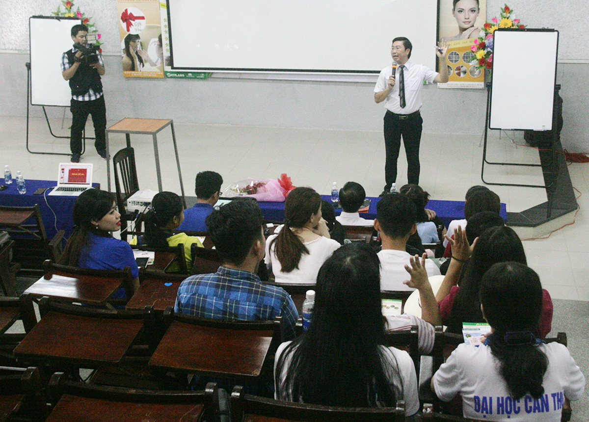 Một chương trình tư vấn làm đẹp cho sinh viên Trường Đại học Cần Thơ. Ảnh: Q. THÁI