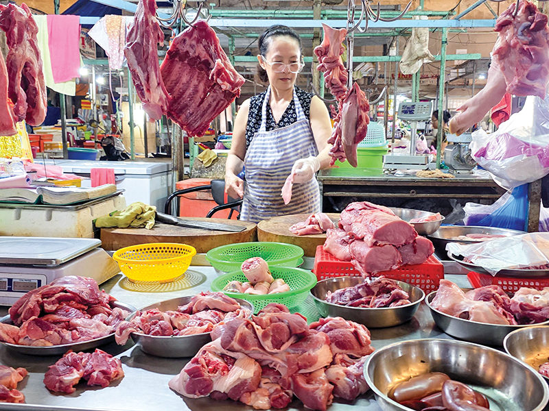 Do giá heo hơi tăng lên ở mức cao, gần đây giá bán lẻ nhiều loại thịt heo trên thị trường cũng vọt lên ở mức khá cao. Tại nhiều chợ và điểm kinh doanh thịt heo trên địa bàn TP Cần Thơ, thịt heo đùi được bán ở mức 120.000-130.000 đồng/kg, ba rọi 140.000-150.000 đồng/kg, sườn non ở mức trên dưới 170.000-180.000 đồng/kg. Còn tại nhiều siêu thị và cửa hàng tiện ích, giá sườn non ở mức 230.000-245.000 đồng/kg, thịt heo nạc ở mức 150.000-159.000 đồng/kg, ba rọi 190.000-200.000 đồng/kg… Mức giá này tăng ít nhất từ 10.000-20.000 đồng/kg so với hồi đầu năm 2025. Do giá thịt heo tăng và nhu cầu tiêu thụ giảm, nhất là từ sau Tết Nguyên đán người dân giảm nhu cầu mua thịt heo, giảm chi tiêu nên sức mua thịt heo giảm khá mạnh. Nhiều tiểu thương cho biết, sức tiêu thụ thịt heo đã giảm từ 20-50% so với trước. Chị Phan Ngọc Vũ, bán thịt heo ở nhà lồng 3, Trung tâm thương mại Cái Khế, quận Ninh Kiều, TP Cần Thơ, cho biết: "Buôn bán thịt heo bây giờ ế lắm do giá thịt heo tăng mạnh, nhiều người giảm mua và chuyển sang mua các loại cá, thịt khác có giá rẻ hơn. Hiện mỗi ngày tôi chỉ bán được khoảng 200kg thịt heo các loại, giảm hơn 50% so với trước. Tôi phải tăng cường chào hàng và kết nối với các nhà hàng, quán ăn và bếp ăn tập thể mới bán được lượng thịt heo như trên, chứ khách đi chợ để mua bây giờ ít lắm". Theo bà Nguyễn Thị Vân, tiểu thương bán thịt heo tại chợ Tân An, quận Ninh Kiều, thịt heo chế biến được nhiều món ăn nên được nhiều người chọn mua nhưng khi giá cao thì nhiều người đã giảm lượng mua nhằm tiết kiệm trong chi tiêu và thời điểm này người dân cũng ít có nhu cầu mua thịt heo để phục vụ làm đám tiệc. Rất mong giá heo hơi và thịt heo sớm giảm và bình ổn trở lại để tạo điều kiện cho sức mua tăng.