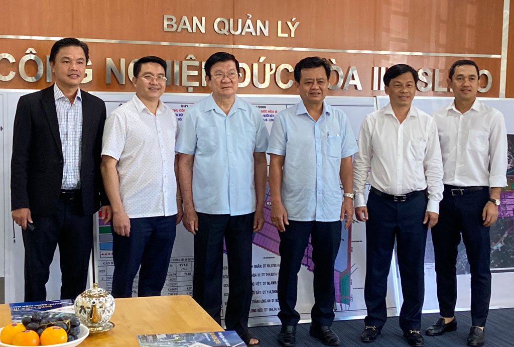 Nguyên Chủ tịch nước - Trương Tấn Sang (thứ 3, trái qua) cùng đoàn công tác thăm và làm việc tại dự án Khu công nghiệp Đức Hòa 3 - Slico