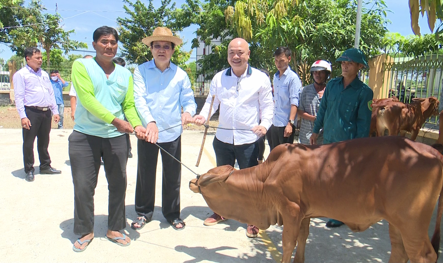 Đợt này, 100 con bò được trao cho các hộ nghèo, cận nghèo ở 9 xã trên địa bàn huyện Vĩnh Hưng với tổng kinh phí 1,85 tỉ đồng do nguyên Chủ tịch nước - Trương Tấn Sang vận động, trong đó, Đoàn Luật sư tỉnh Bình Dương tài trợ 1,3 tỉ đồng, phần còn lại từ nguồn vốn đối ứng của huyện.