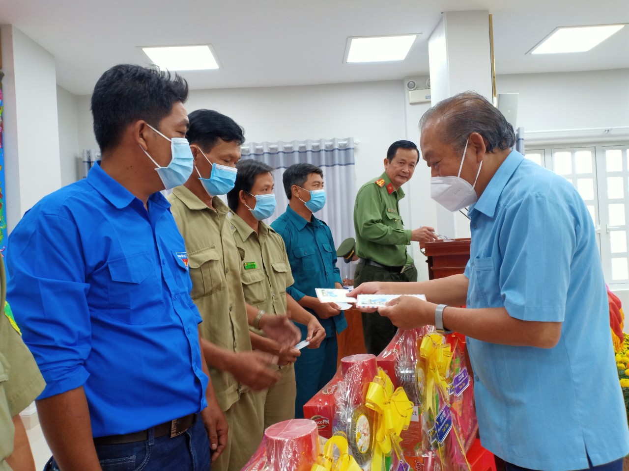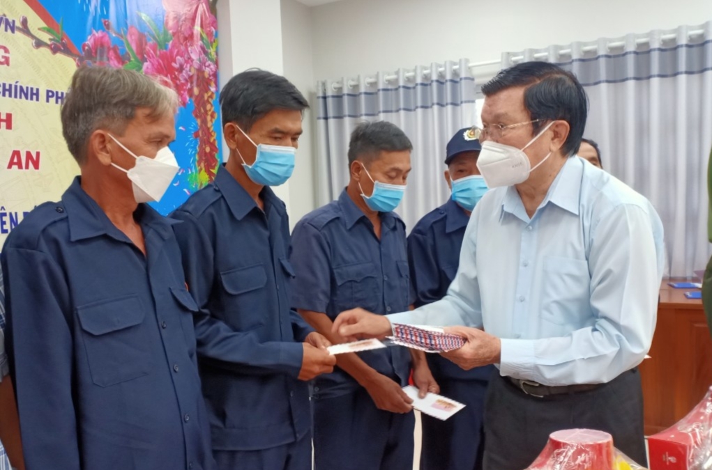 Nguyên Phó Thủ tướng Thường trực Chính phủ - Trương Hòa Bình tặng quà cho các lực lượng