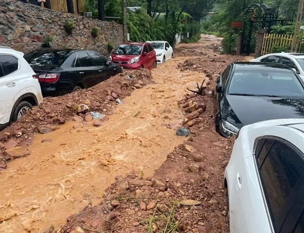 Mưa to dẫn đến một số cống ngang và rãnh thoát nước phía taluy dương bị đất đá, cành cây bồi lấp, kết hợp mặt đường bị đất đá bồi lấp ngăn chặn dẫn đến dòng nước chảy tràn qua đường, hướng dòng chảy tập trung vào đúng vị trí xung yếu bên taluy âm, gây sự cố xói, lở đất, ngập úng cục bộ nguy hiểm.