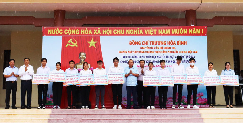 Nguyên Phó Thủ tướng Thường trực Chính phủ - Trương Hòa Bình trao học bổng cho sinh viên