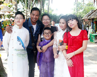 | Ông “bầu” Nguyễn Phú (thứ 2, trái qua) và nhóm người mẫu nhí của Công ty Người mẫu Tây Đô. |