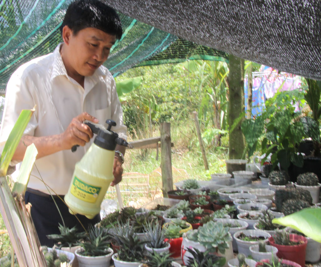 Các thầy giáo ở nhà công vụ xã Thủy Đông còn trổ tài trồng cây kiểng