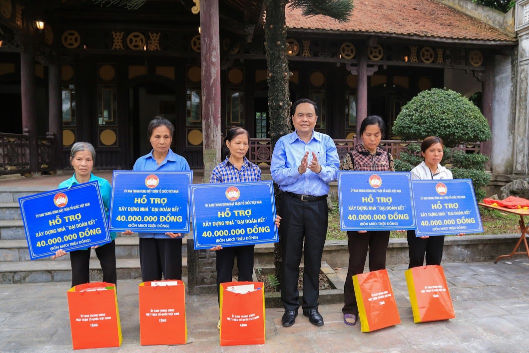 Trước đó, Chủ tịch Ủy ban Trung ương MTTQ Việt Nam cùng đoàn công tác và lãnh đạo tỉnh Phú Thọ đã thành tâm làm lễ dâng hương tại Đền Thượng, kính cẩn tri ân công đức các bậc tiền nhân đã có công dựng nước và giữ nước, cầu mong quốc thái dân an. Tiếp đó, đoàn đã trồng cây lưu niệm, đến khảo sát khu nhà Đại đoàn kết tại Khu di tích lịch sử Đền Hùng và trao tiền hỗ trợ xây dựng nhà Đại đoàn kết cho 5 hộ nghèo trên địa bàn tỉnh, mỗi gia đình 40 triệu đồng và thăm hỏi gia đình ông Trần Văn Đăng, nguyên Tổng Thư ký Uỷ ban Trung ương MTTQ Việt Nam./.