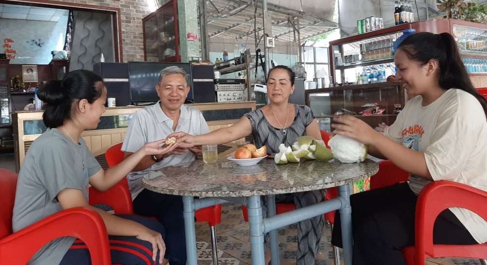 Chủ quán cà phê Phương Duy là vợ chồng chị Huỳnh Thị Mỹ Duyên (47 tuổi) - anh Lê Thành Trung (60 tuổi) có hai cô con gái. Chị Duyên kể, sau khi hai vợ chồng sinh liên tiếp hai con gái, hai bên nội ngoại đều khuyên anh chị kiếm thêm con trai nối dõi tông đường. Tuy nhiên, anh chị nghĩ, con nào cũng là con, sợ nhất là sinh con đông nhưng không đủ điều kiện nuôi dạy, nên đồng thuận dừng chuyện sinh nở, chăm lo làm ăn. Thuở đầu, “cơ ngơi” của đôi vợ chồng trẻ chỉ là một mái che nhỏ với vài chiếc ghế cóc bán nước giải khát ven đường. Dần dà, vợ chồng tích góp, quán nước ngày càng thu hút khách, được xây cất khang trang, cuộc sống gia đình khá giả hơn. Hai đứa con gái, một đang học lớp 11 và một đang học lớp 9 đều chăm học. Ngoài giờ học, hai chị em còn giúp mẹ quán xuyến công việc nội trợ và tiếp việc buôn bán. Chị Duyên bộc bạch: “Gia đình luôn rộn tiếng cười, vợ chồng con cái đi đâu cũng muốn mau mau về nhà. Quả thật, con cái dù trai hay gái không quan trọng, chủ yếu vợ chồng yêu thương nhau, dạy dỗ con đàng hoàng thì cuộc đời coi như mãn nguyện rồi”.