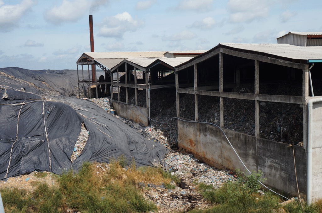 Rác bị tồn ứ thành núi trong nhà máy (ảnh chụp ngày 26/8/2016)