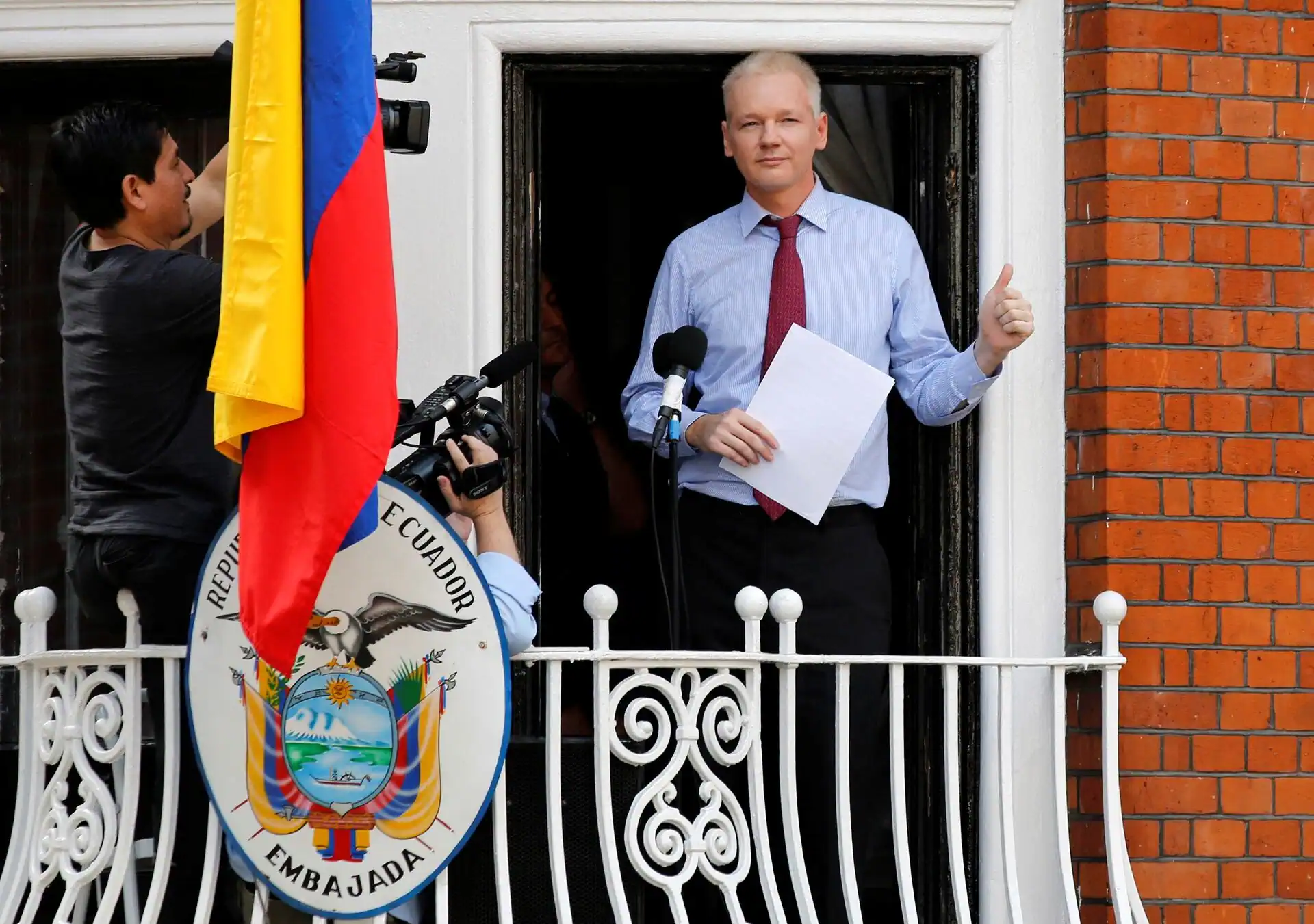 Assange bắt đầu “trốn” trong cơ quan ngoại giao trên vào năm 2012 và được cấp phép tị nạn chính trị sau khi tòa án ở Anh ra phán quyết rằng ông phải bị dẫn độ về Thụy Ðiển để điều tra liên quan cáo buộc hiếp dâm. Tuy nhiên, sau khi Chính phủ Ecuador rút quy chế tị nạn với Assange vào năm 2019, ông bị cảnh sát Anh bắt giữ rồi tống giam vì vi phạm các quy định về bảo lãnh.