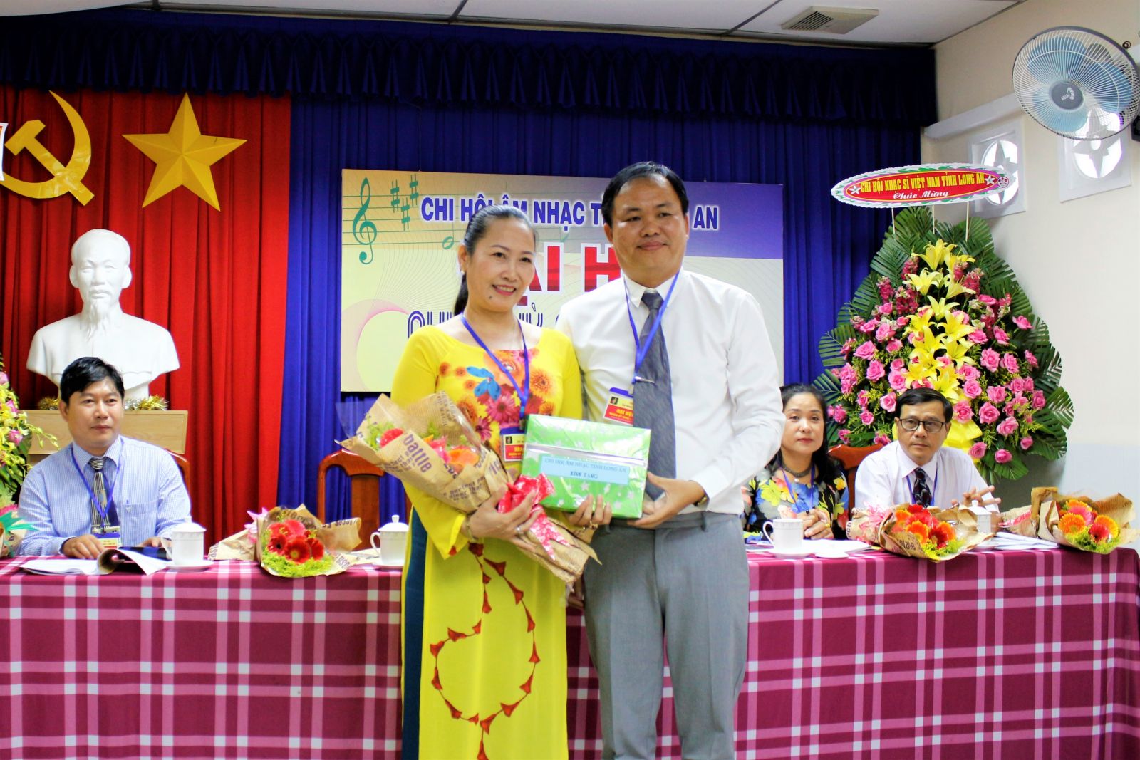 Nhạc sĩ Nguyễn Thanh Hải tặng quà cho Biên đạo múa Hạnh Nguyên - thành viên Ban Chấp hành nhiệm kỳ cũ không tái cử