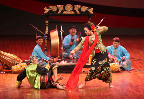 Chương trình biểu diễn của đoàn nghệ thuật truyền thống Indonesia tại Liên hoan Âm nhạc truyền thống các nước ASEAN - 2015 ở Thanh Hóa tối 4/8. Ảnh: Thanh Tùng - TTXVN