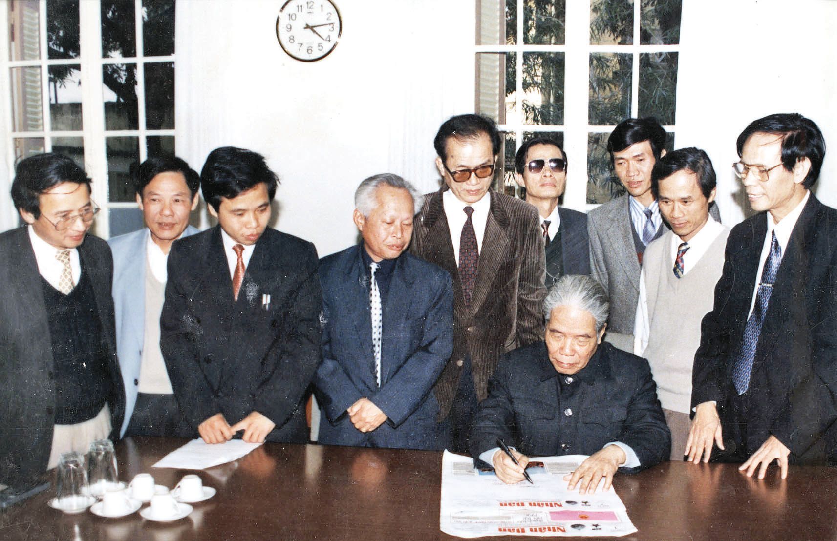Tổng Bí thư Đỗ Mười ký duyệt măng-sét mới của Báo Nhân Dân (8 trang) ngày 27/12/1996.