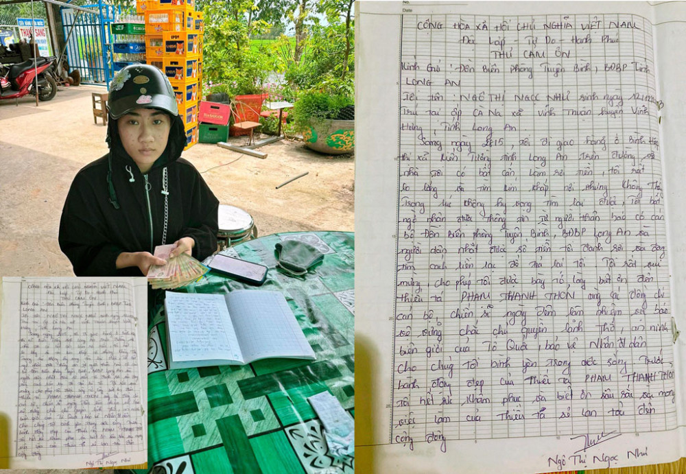 Sau khi nhận lại đầy đủ tài sản bị đánh rơi, chị Ngô Thị Ngọc Như đã có thư cảm ơn gửi đến Đồn Biên phòng Tuyên Bình và Thiếu tá Phạm Thanh Thỏn./.